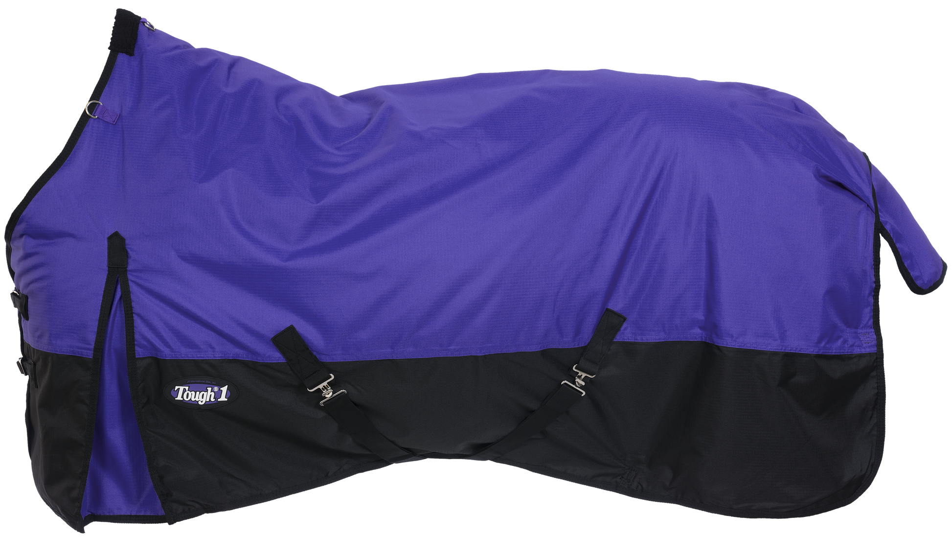 420 Denier ripstop with a poly outer shell and breathable 70D lining. Shoulder gussets allow for free movement and are designed without a back seam to prevent leaking. Double buckle front, fleece wither protection, adjustable leg straps with elastic ends, and crossed surcingles.