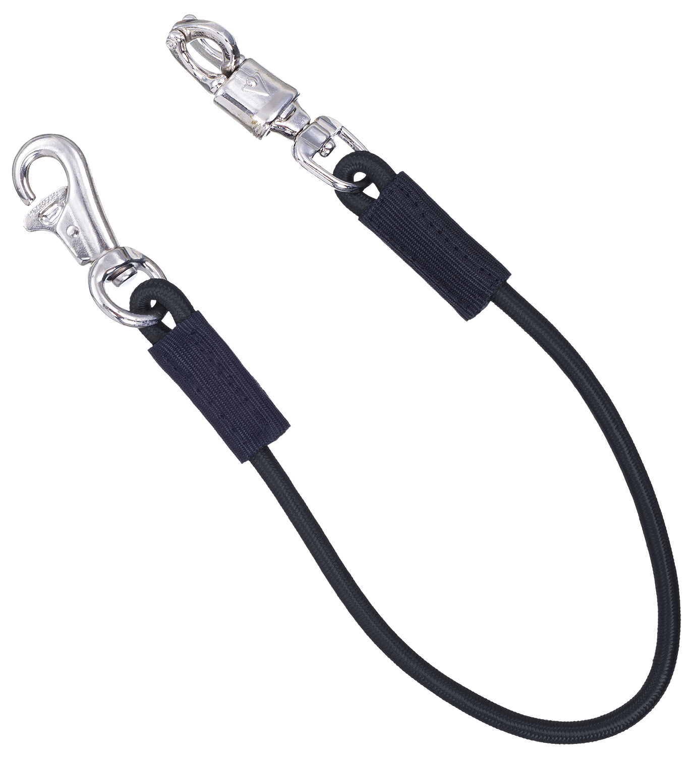 24 strong braided 5/8 poly rope. Brass plated trigger bull snap on one end and quick release on the other.
