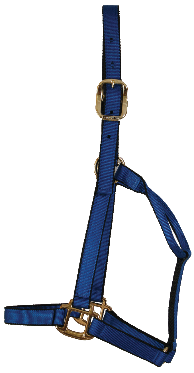 Crafted of our 1 flat halter webbing, brass plated hardware, without a throat snap.