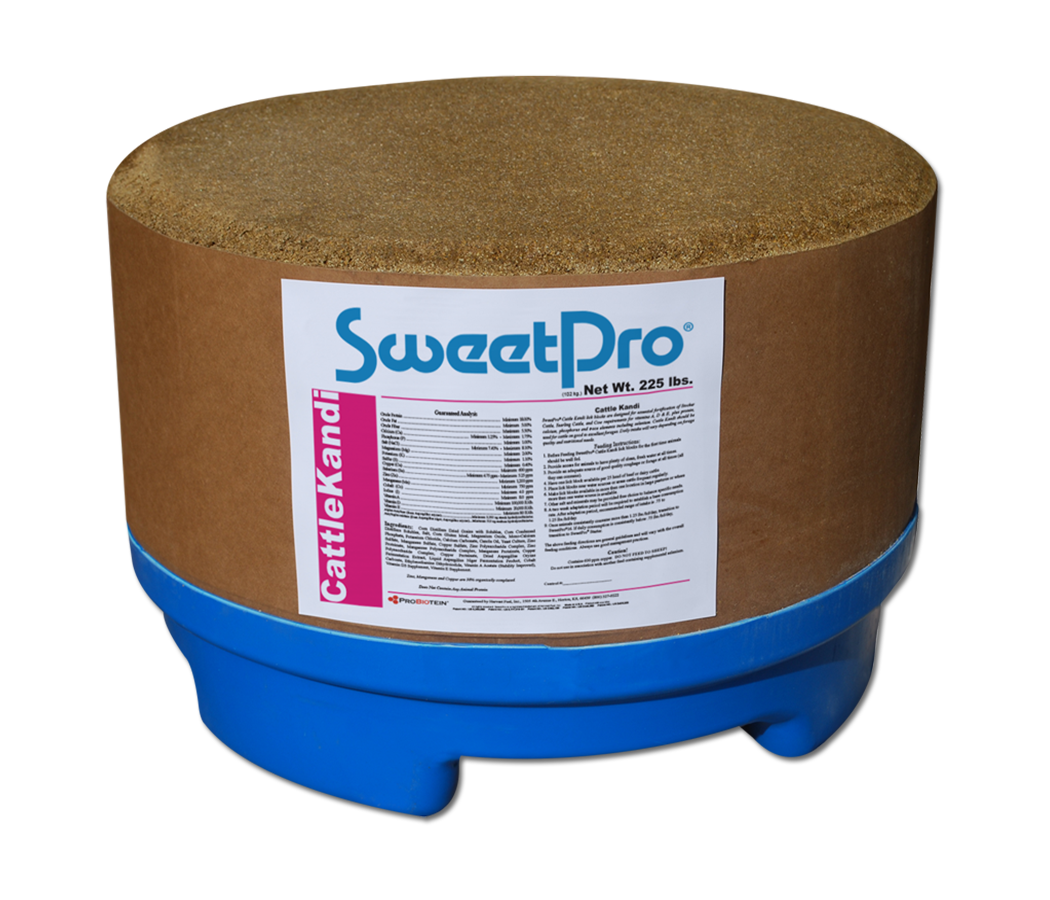 Cattle Kandi contains a complete vitamin and organic trace mineral package, our proprietary yeast culture and prebiotic blend ProBiotein® and all the benefits of SweetPro’s fermented blend of condensed distillers solubles and distillers dried grains with solubles.