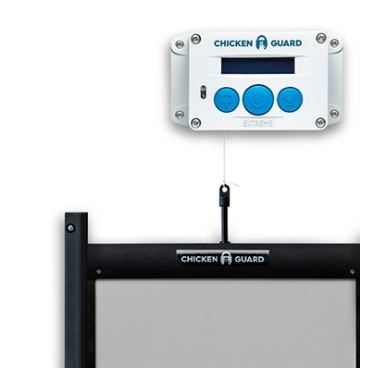 ChickenGuard©Extreme door opener offers great value and ease of use combined in an all-in-one design for straight forward installation. Simple setup with no complicated wiring, just attach the door opener to your coop, connect the cord to the door and ready to go.