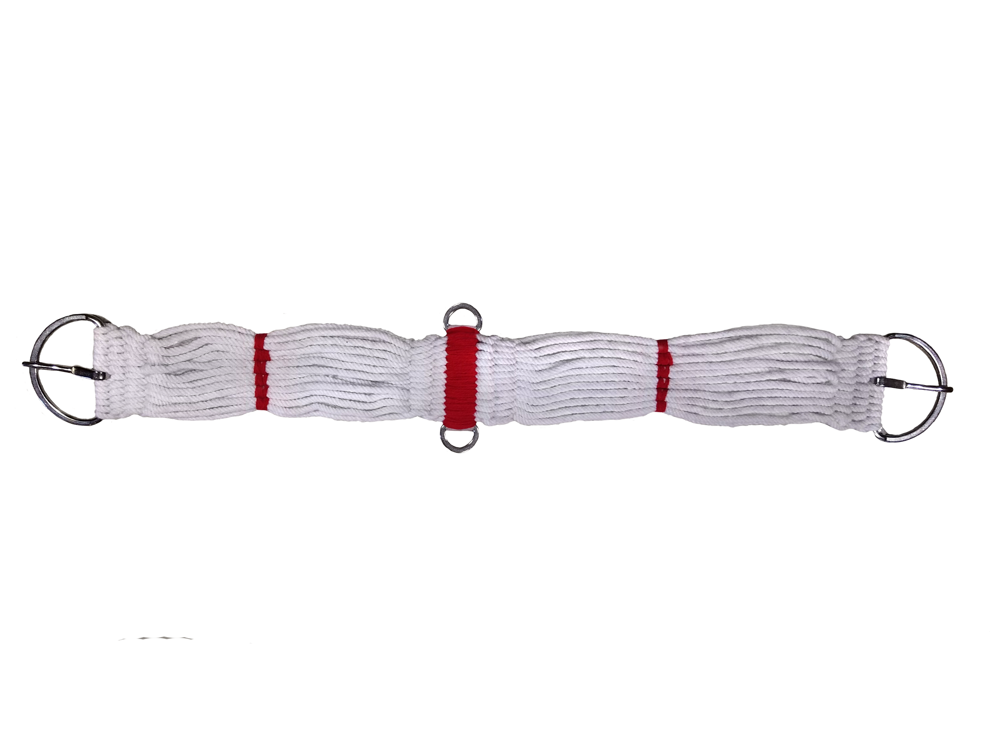 27 Strand natural cotton cord roper girth double woven to help prevent chafing. A wider center for more support. Heavy steel hardware. Straight pull buckles. Durable and comfortable