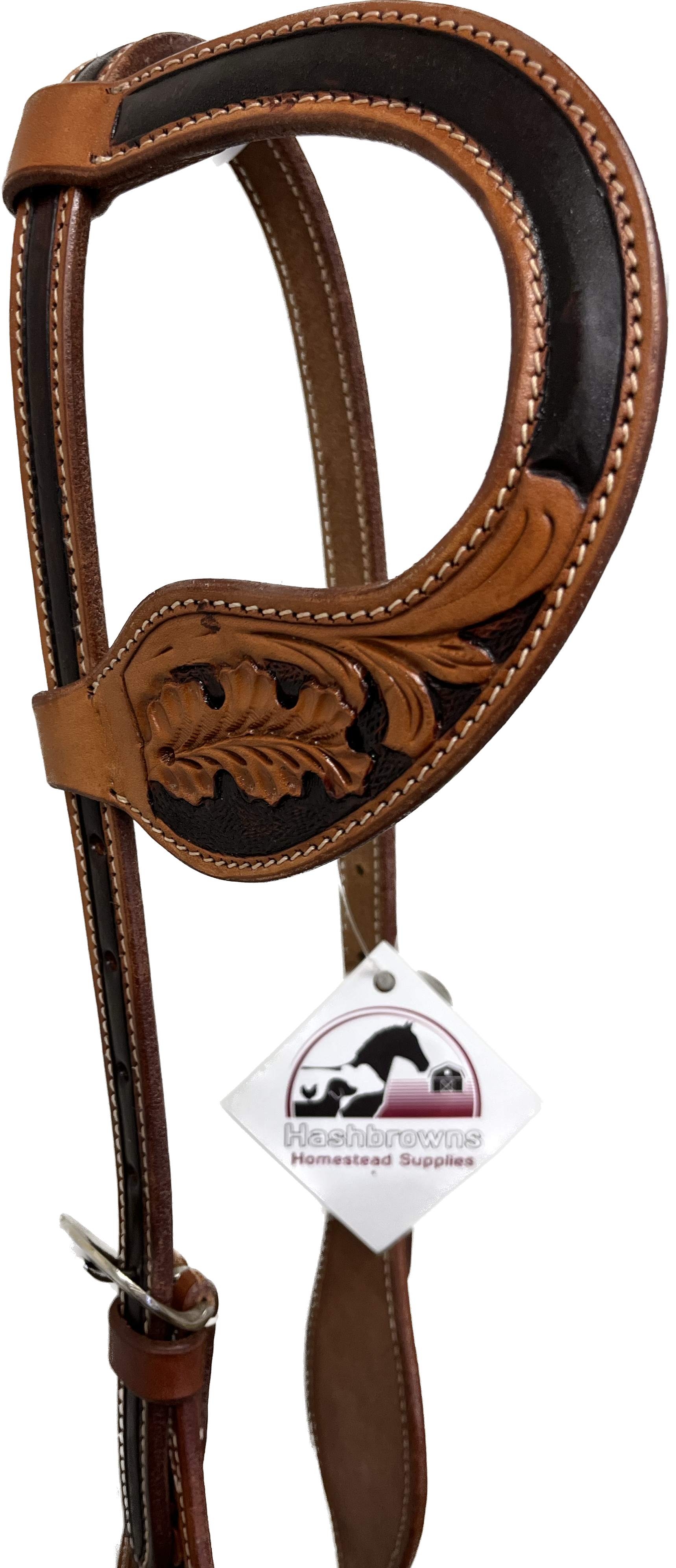 True North - One Ear Leather Headstall Carves Leaf w/Two Tone Carving