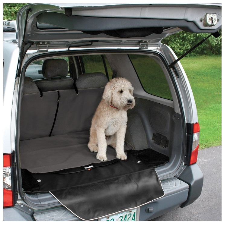Protect the cargo area of your station wagon or SUV from muddy paws and dirty chores like transporting trash to the dump or flowers from the garden center. The Kurgo Cargo Cape not only protects your interior, but it has multiple attachment areas to keep it from sliding around and provides a comfortable and stable spot for Fido to ride. The unique bumper flap covers your fender protecting it from scratches and avoids smudging your clothing. Whether you are traveling with Fido or transporting other dirty stuff, this cargo area cover will keep your car neat and clean.