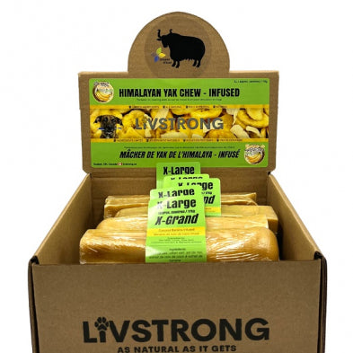 Livstrong Pets Himalayan Yak Cheese is a 100% natural, long-lasting chew made from an ancient Himalayan recipe in Nepal. Using only 3 ingredients – Yak Milk, Lime & Salt, it is a perfect chew for all-sized dogs. As the cheese is hardened it becomes lactose-free so easy to digest and contains no preservatives. Long lasting chew with no mess or odour. Our Himalayan Cheese Yak Chews are flown in direct from Nepal ensuring freshness. When there is a small piece of the chew left over, simply microwave it for 30 seconds until it puffs up like popcorn, let it cool and feed it back to your furry friend!