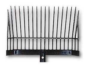 Designed to rake up then pick up. Angled sides to prevent spillage.