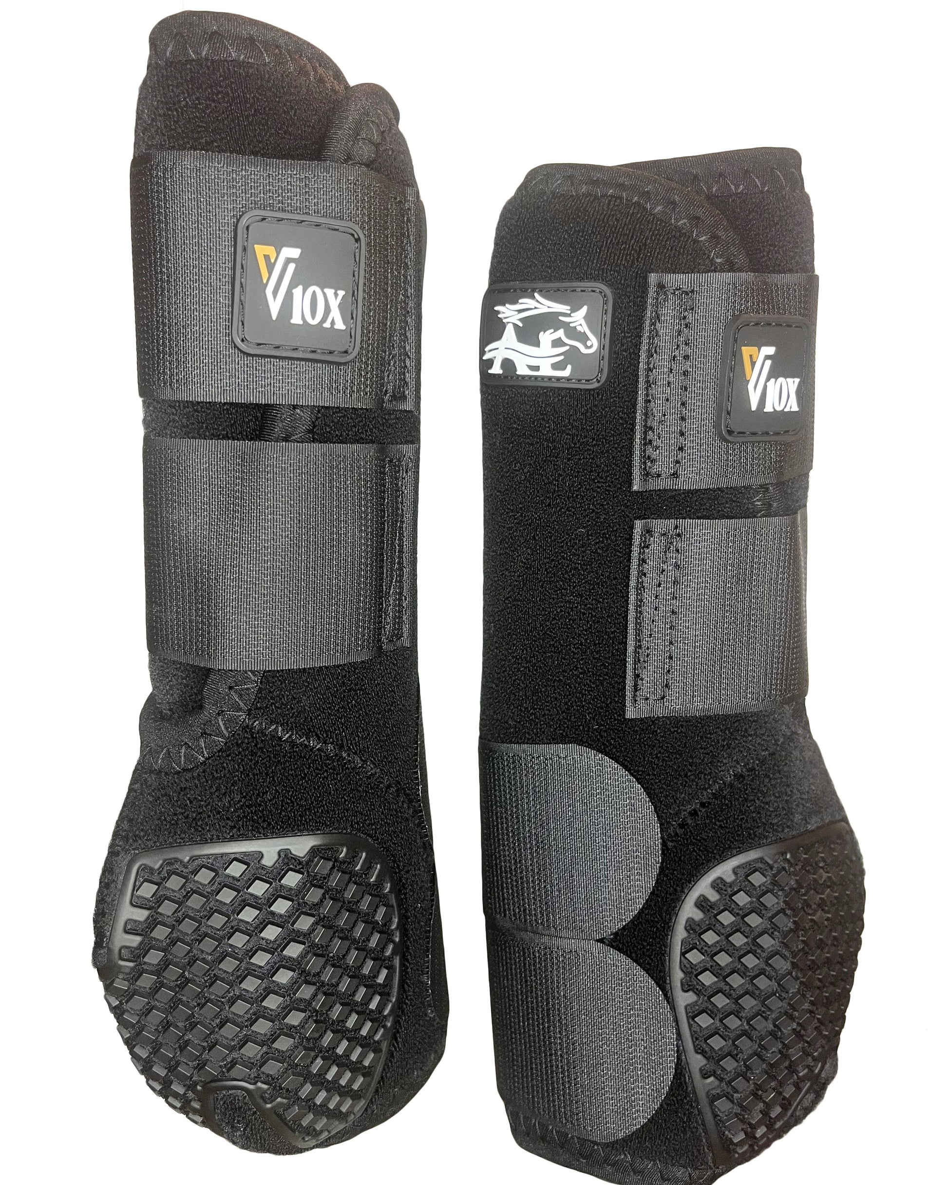 The V10X boot is enhanced with industry leading diamond fetlock protection, to safely mold to your horse, while maintaining maximum mobility and comfort. Each diamond is strategically placed to improve comfort and minimize impact, creating ideal suspensory protection. Made of 100% virgin 4-way stretch neoprene that is perforated to ensure breathability, reinforcing the horse’s natural movement.
