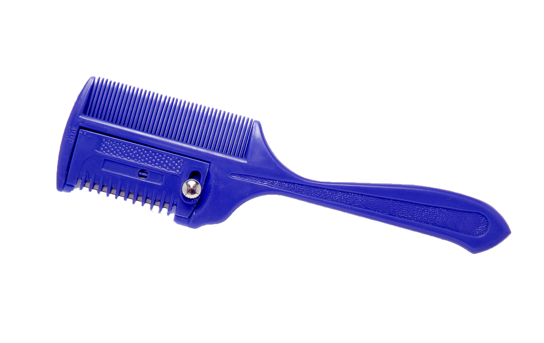 Polymer comb with grooming blade for thinning mane and tail. Replaceable edge blade.