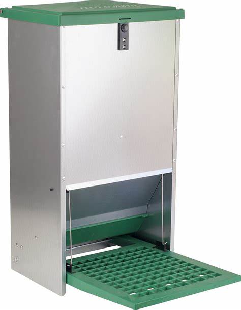 Treadle Feeder are used to reduce attracting wild birds, mice and other pests to the feeder. The feeder closes when the chicken is not eating.