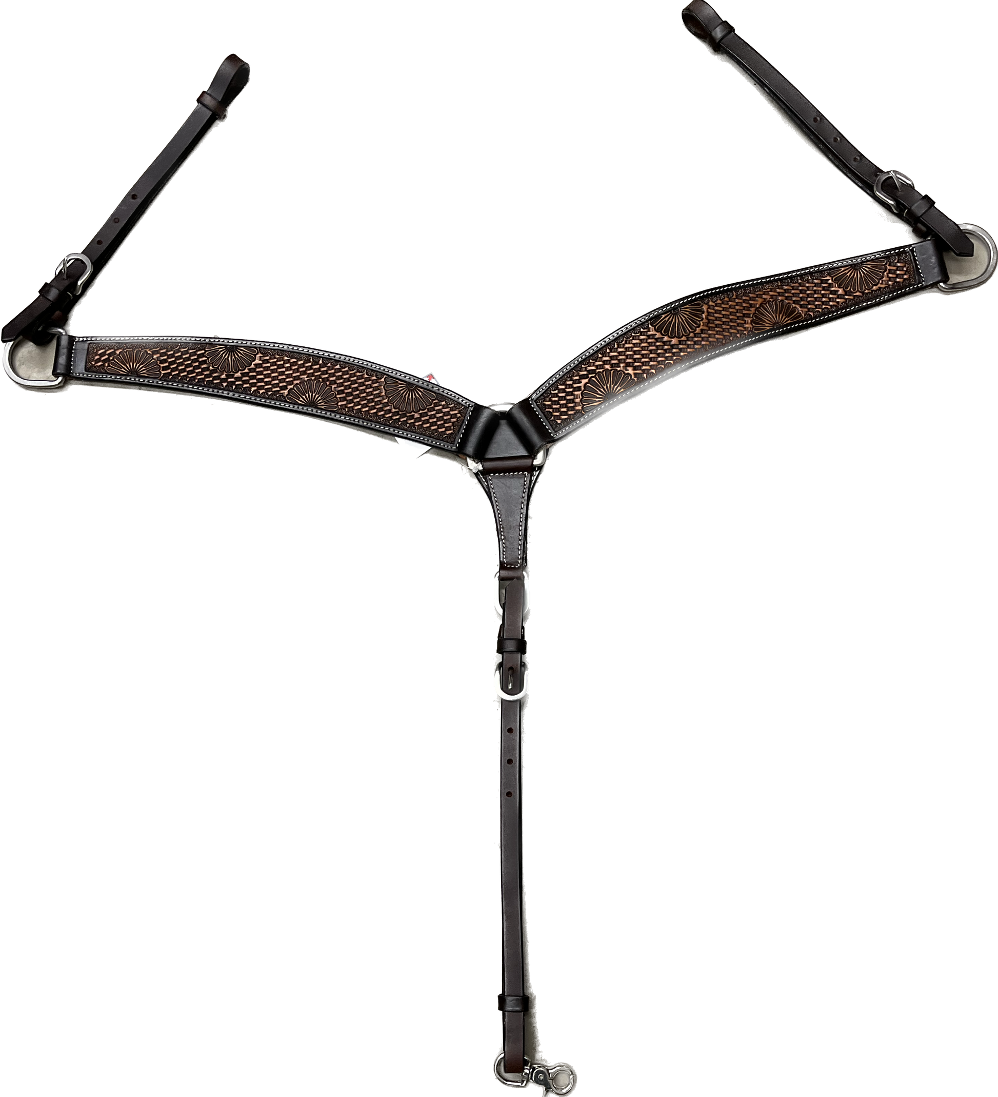 True North - Leather Breast Collar With Carved Flower Dark Oil