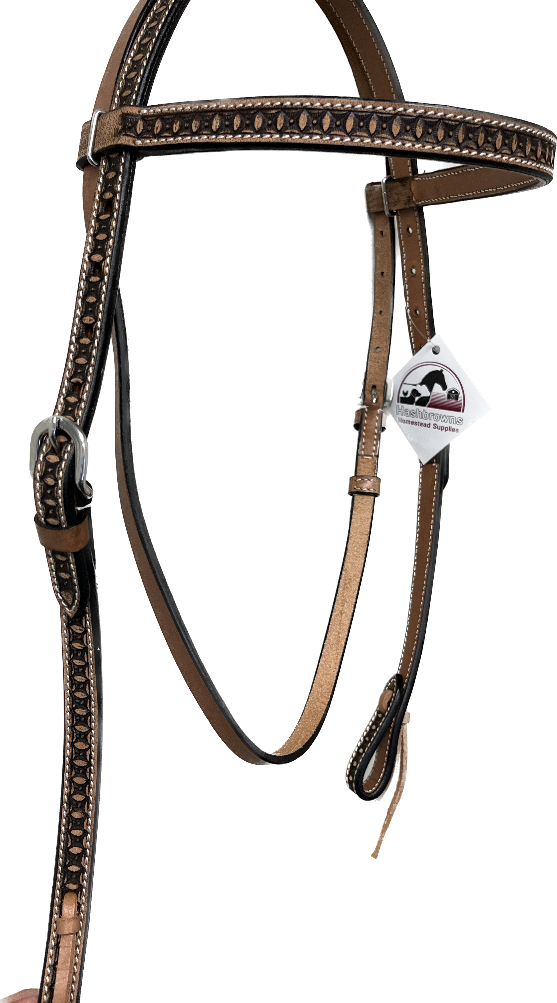 True North - Leather Browband Headstall Tooled w/Ties - Dark Oil