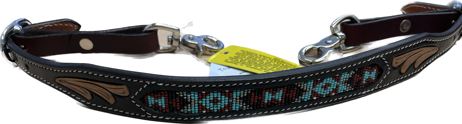 True North - Beaded Wither Strap w/ Floral Carving - Light Oil