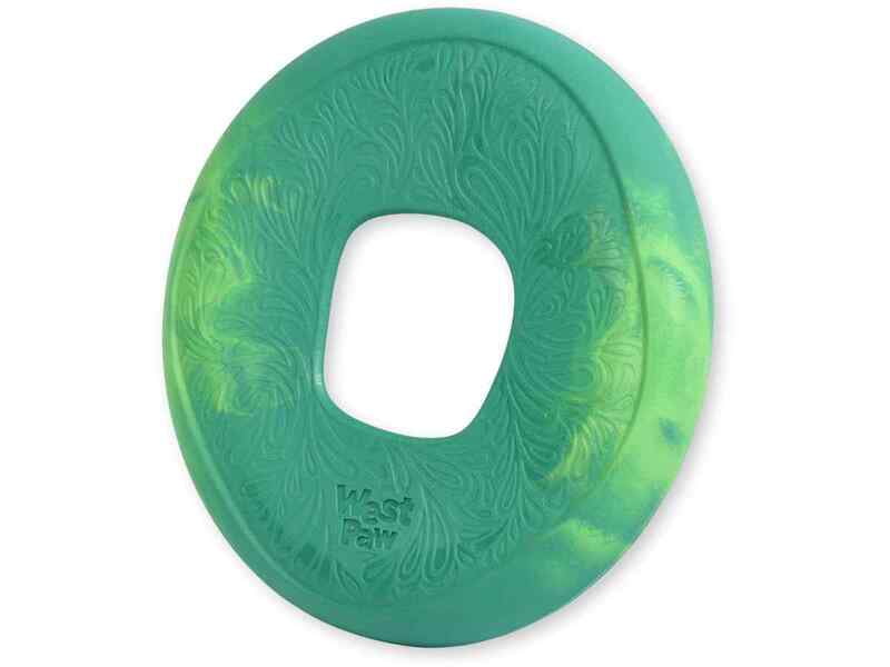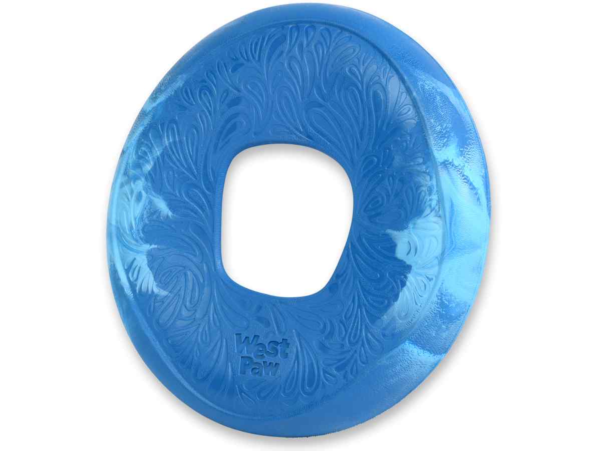 Large is 8.75". The Sailz is our newest take on your dog's favorite frisbee. Made responsibly with Seaflex™ this disc was inspired by disc golf shapes in order to fly far and true! Durable and lightweight with a center hole to make it easier for dogs to pick it up and bring back for another toss.
