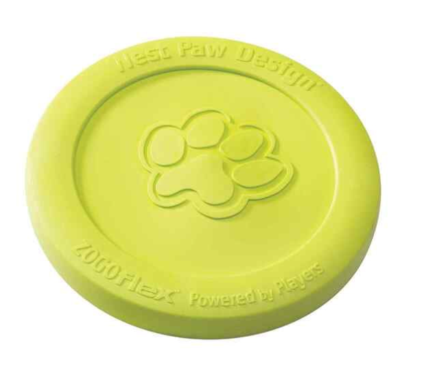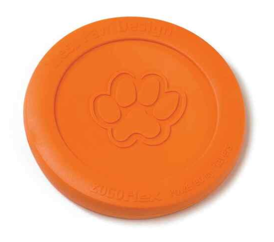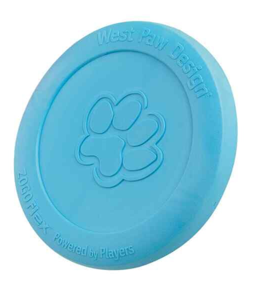 Small is 6.5". Large is 8.5". This high-flying frisbee is lightweight yet tough. The Zisc is gentle on dog's mouths; it's soft, pliable, floatable, and flies far.