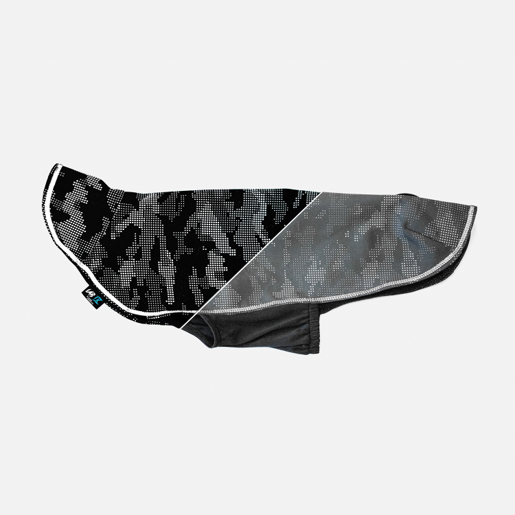 When light shines on these jackets, a stellar camouflage design lights back up in return. Featuring soft and lightweight micro fleece lining and an elastic neckline, these jackets keep your dog both safe and warm.